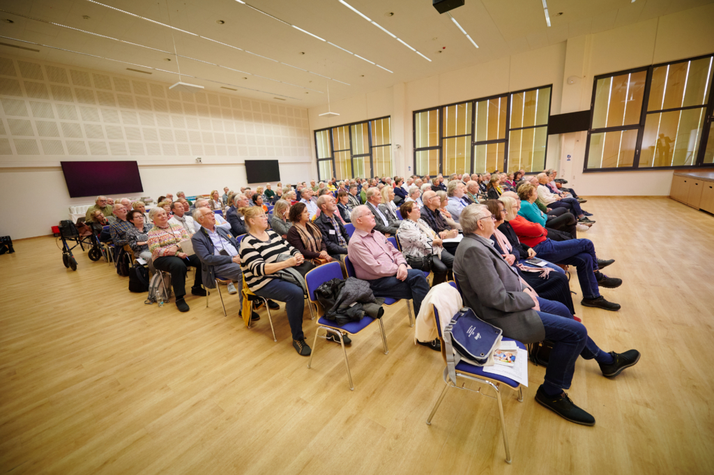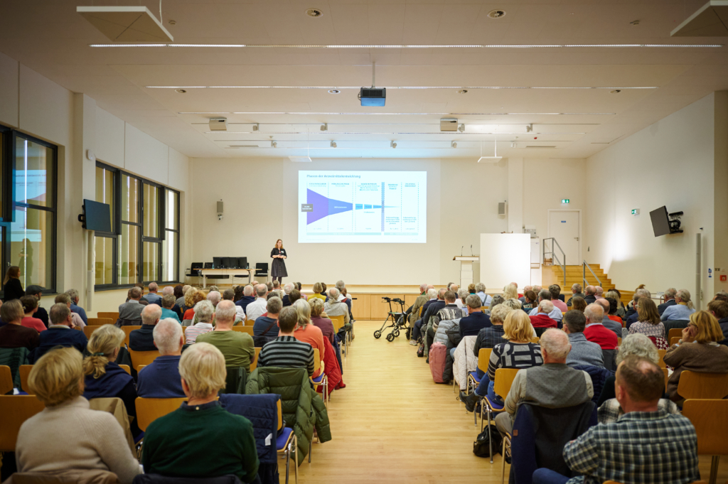 Die zahlreichen Zuhörer verfolgen gespannt den Vortrag von Dr. Geibl über die Grundlagenforschung